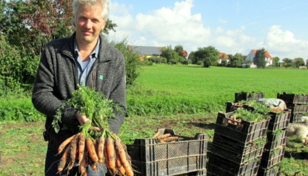 Gemeinsam mit meinem Bruder Andreas bewirtschafte ich seit gut 30 Jahren unseren Biohof in Ostwestfalen nach Bioland-Richtlinien. Wir bauen auf insgesamt 65 Hektar Obst, Gemüse und Getreide an. Durch Kooperationen und Beteiligungen bündeln wir in der Region insgesamt 125 ha Freilandgemüse, 50 ha Obst und 1,5 ha Gewächshäuser. Zu dem bereits vielfältigen Sortiment, kam vor einigen Jahren noch eine Pilz- und Chicoreézucht hinzu. Wir setzen in der Anbauplanung auf zwei 5-teilige Fruchtfolgen, eine mit und eine ohne Gemüse.